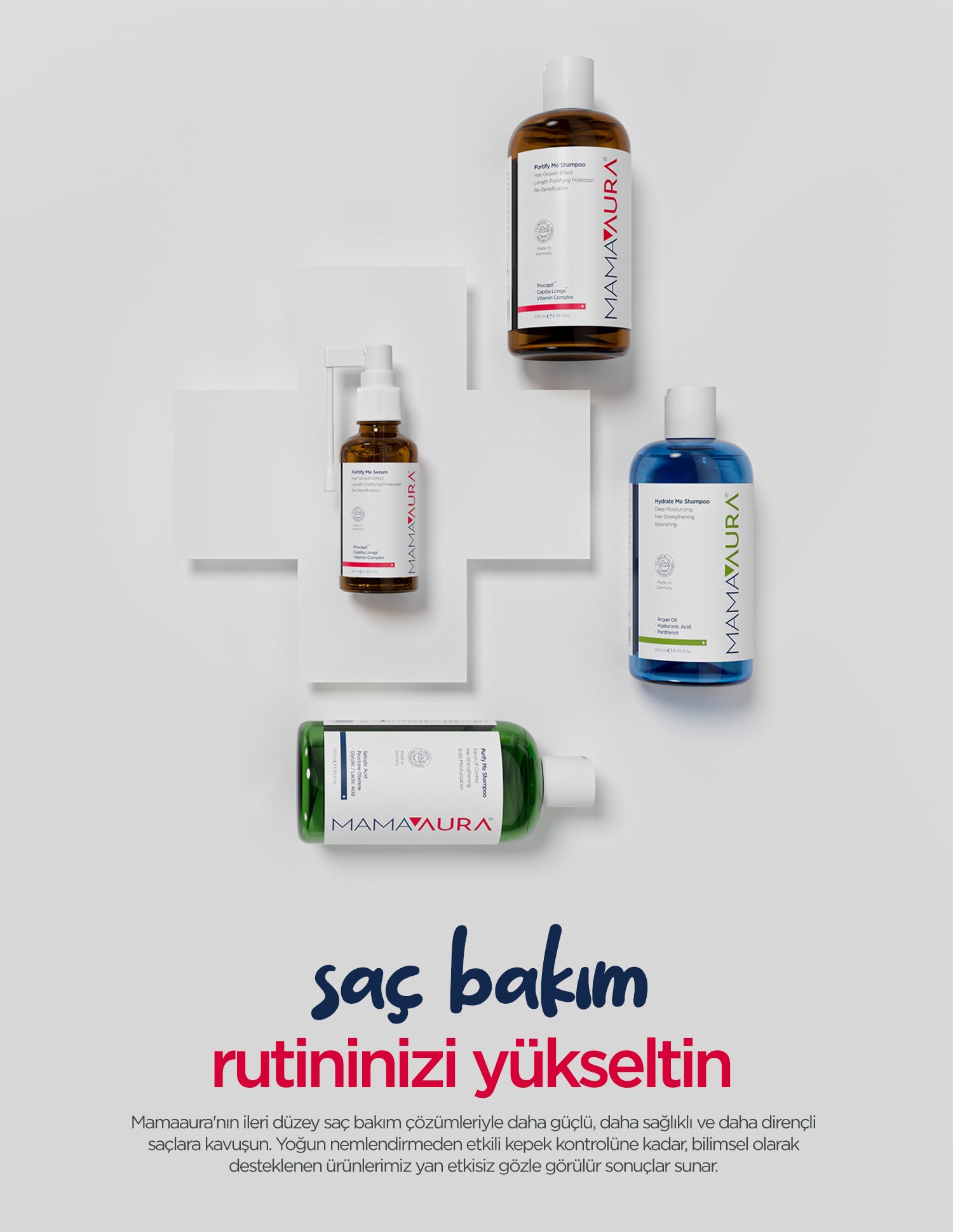 Her saç tipi ve ihtiyacına özel olarak geliştirilen Mamaaura Hair Experts Saç Bakım Serisi, saçınıza en etkili ve fonksiyonel bakımı sunmayı amaçlıyor. Mamaaura Hair Experts, bilimsel bir yaklaşımla saçınıza hedeflenmiş çözümler sunmayı hedefliyor. Klinik olarak onaylanmış formülleri ile saçlarınızın her gün daha sağlıklı, parlak ve canlı olmasını destekler. Şimdi keşfedin ve saçınız için en iyisini seçin!