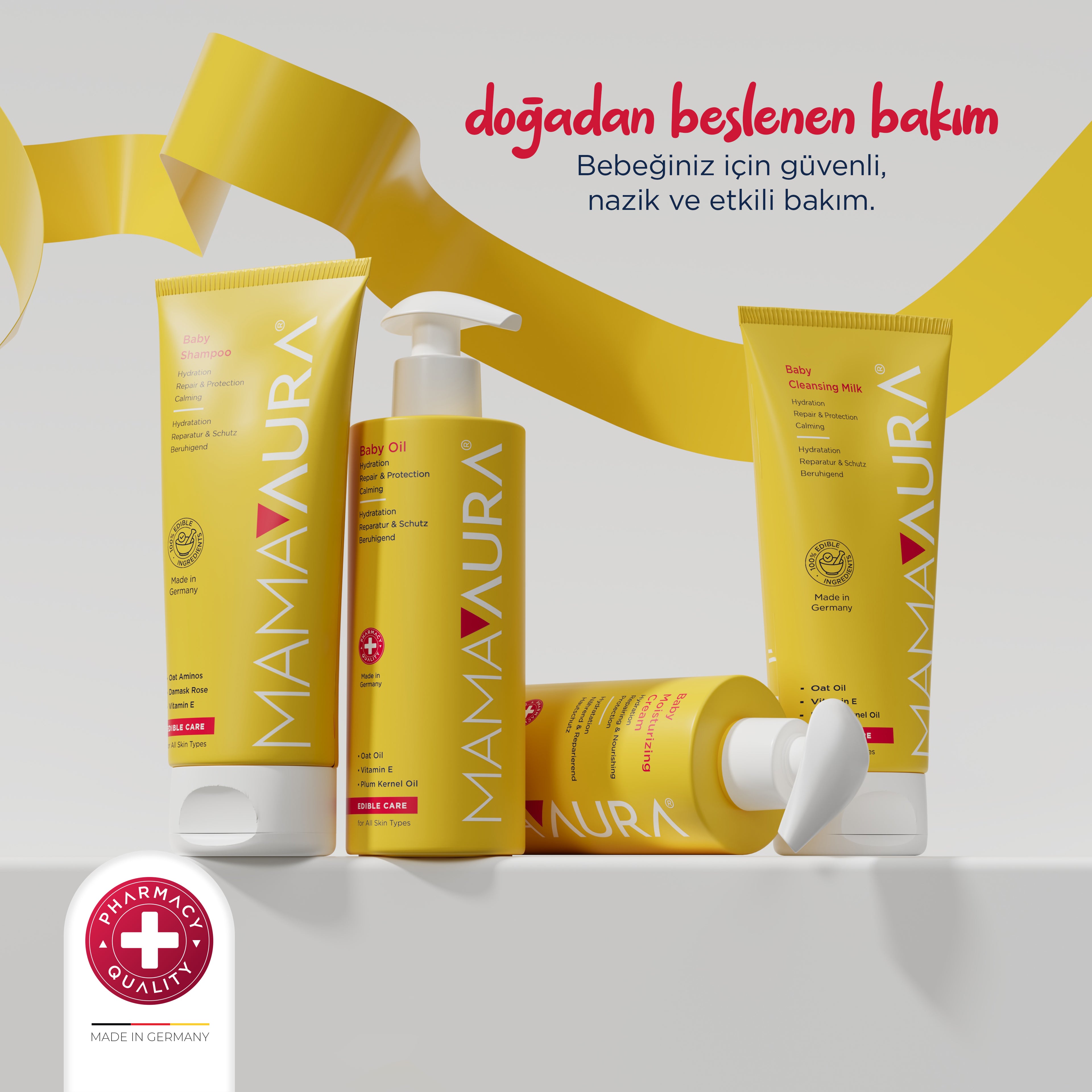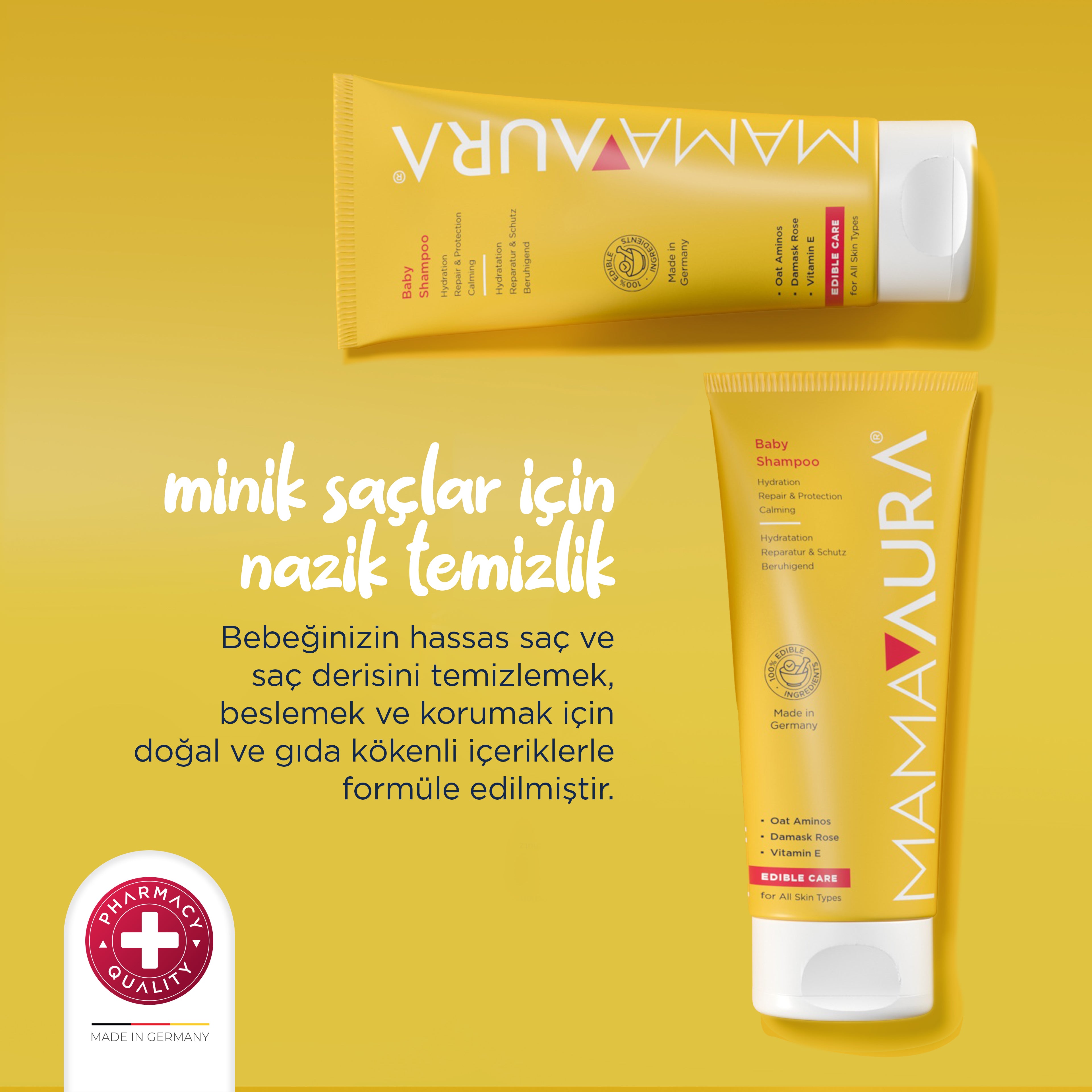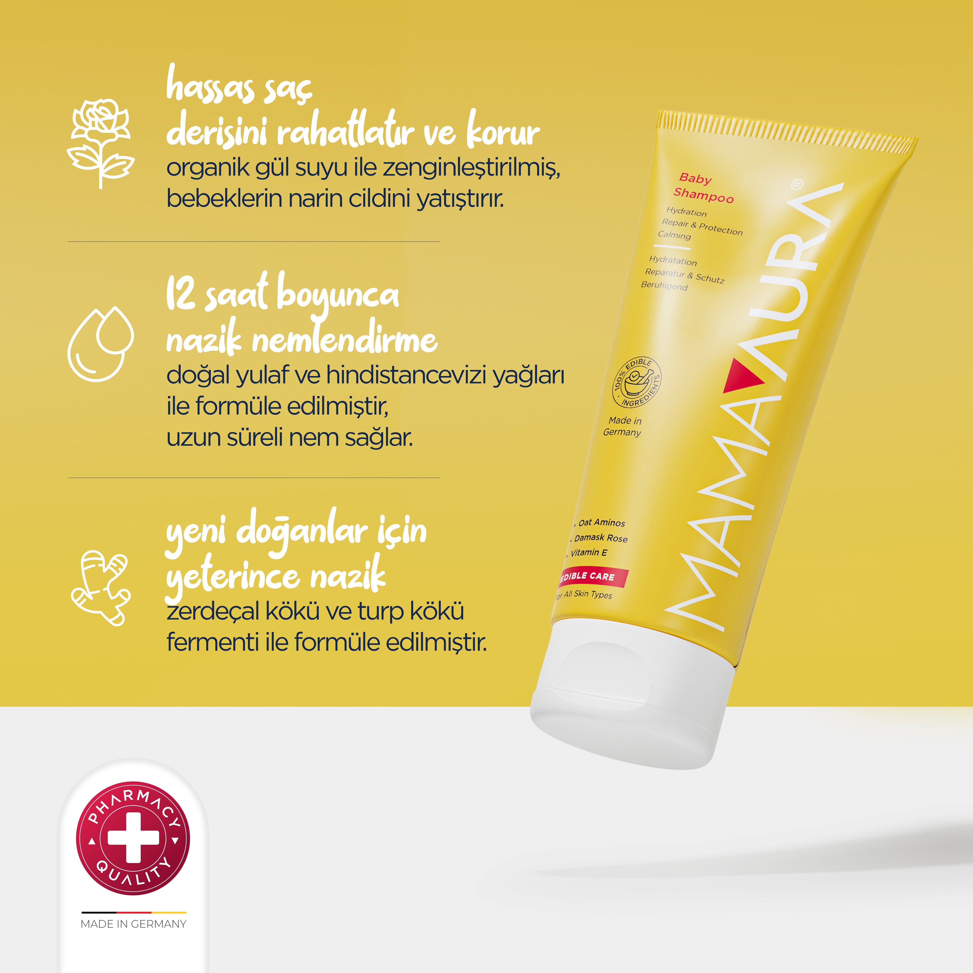 Mamaaura Bebek Şampuanı en doğal içeriklerle bebeğinizin hassas saç derisini ve saçını nazikçe temizler ve nemlendirir. Yulaf amino asitleri, bitki bazlı gliserin ve organik hindistancevizi yağı ile zenginleştirilmiş, doğal yağları korur ve derin nem sağlar. Organik gül suyu ve Lactobacillus fermenti içeren rahatlatıcı formül, sağlıklı bir saç derisi ortamı oluşturmaya yardımcı olur ve beşik kepi riskini azaltır. Yeni doğanlar ve hassas ciltler için güvenli olan bu şampuan, yumuşak, göz yakmayan bir banyo deneyimi sağlar.