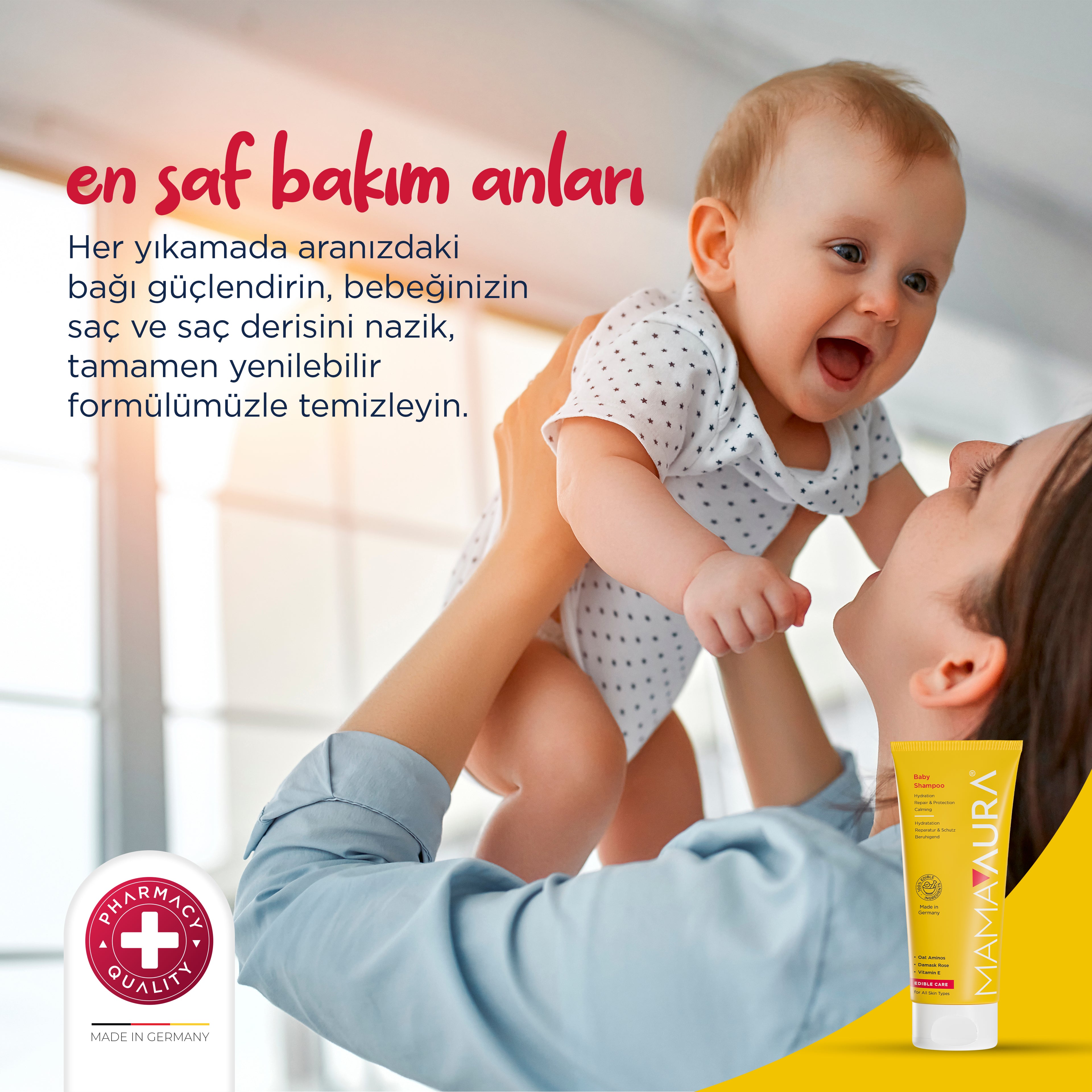 Sevgi ve özenle hazırlanan Mamaaura Bebek Şampuanı, sert kimyasallar ve yapay katkı maddeleri içermez. Gül suyu ve fermente probiyotikler gibi saf, gıdada kullanılabilir bileşenler, bebeğinizin hassas saç derisi için en güvenli bakımı sağlar. Bebeğinizin doğal saflığına saygı duyan ve onu geliştiren, her nazik yıkamada sağlık ve esenlik havasını besleyen bir şampuana güvenin.