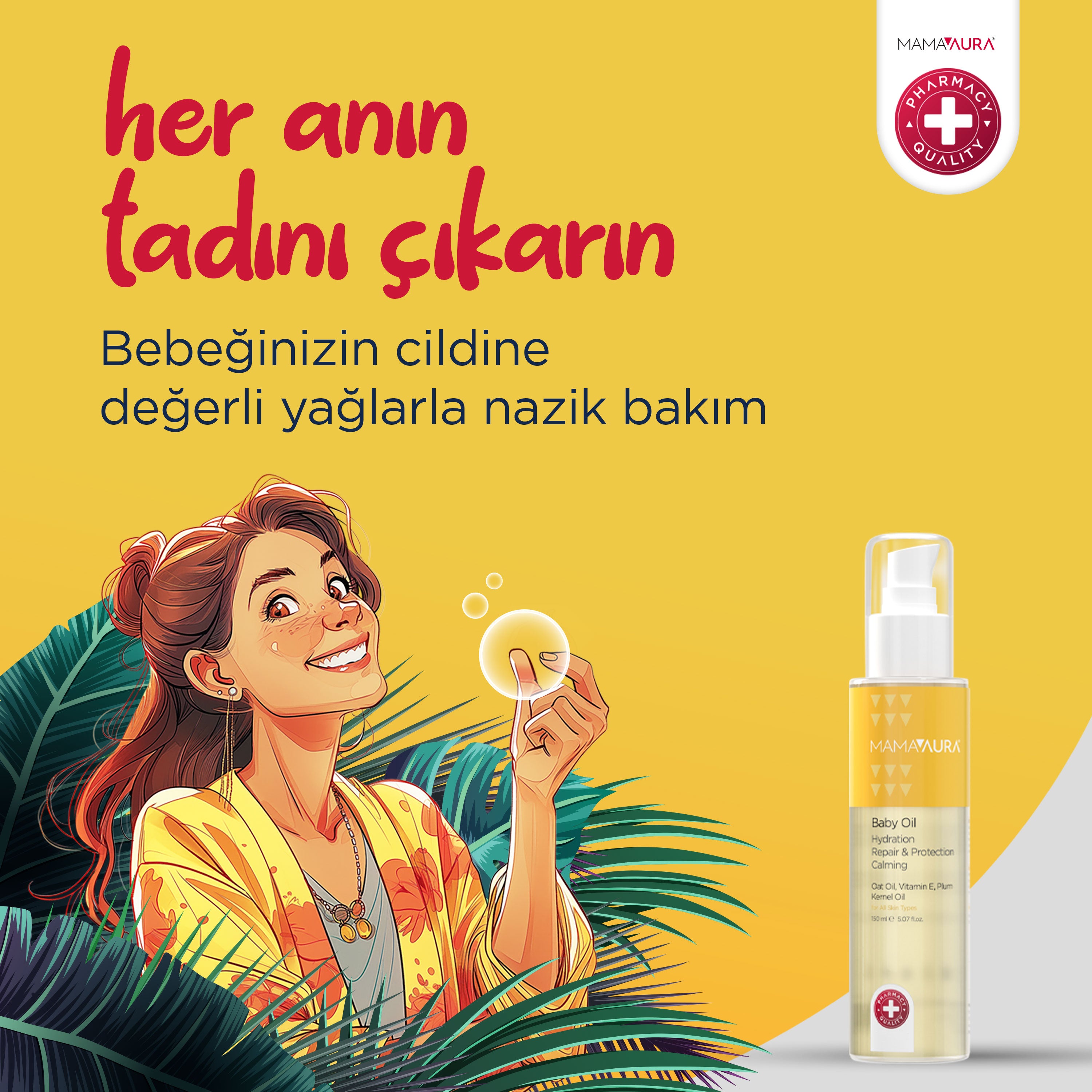 Mamaaura Baby Oil’i tercih ederek, güvenilir içeriklere sahip, hassas ciltlere uygun ve ebeveynlerin severek kullandığı bir ürünü bebek bakım rutininize dahil etmiş oluyorsunuz.